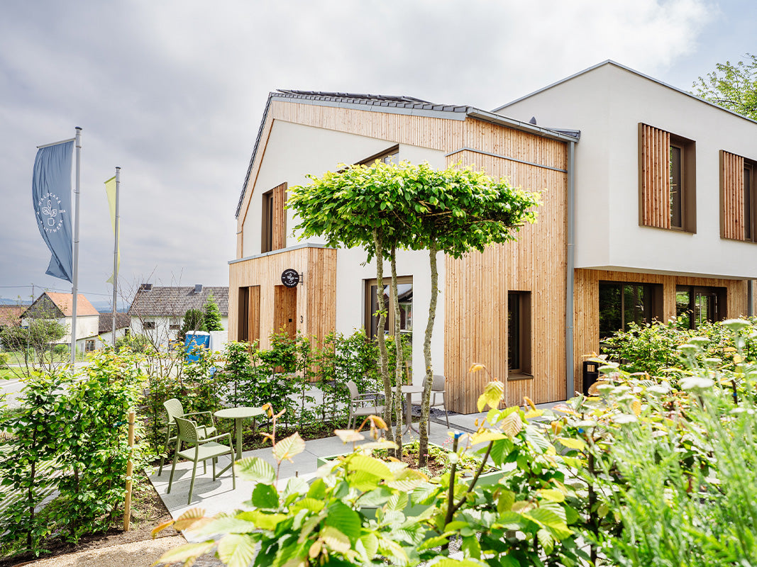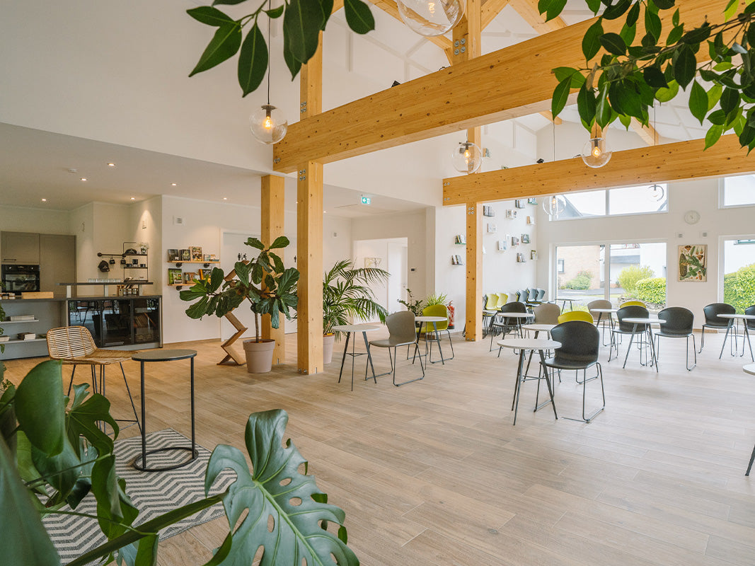 The seminar rooms at Haus Blattwerk are bright, modern, and full of natural colors and materials. Thanks to a large photovoltaic system, we can maintain environmentally friendly, pleasant air conditioning even in summer.